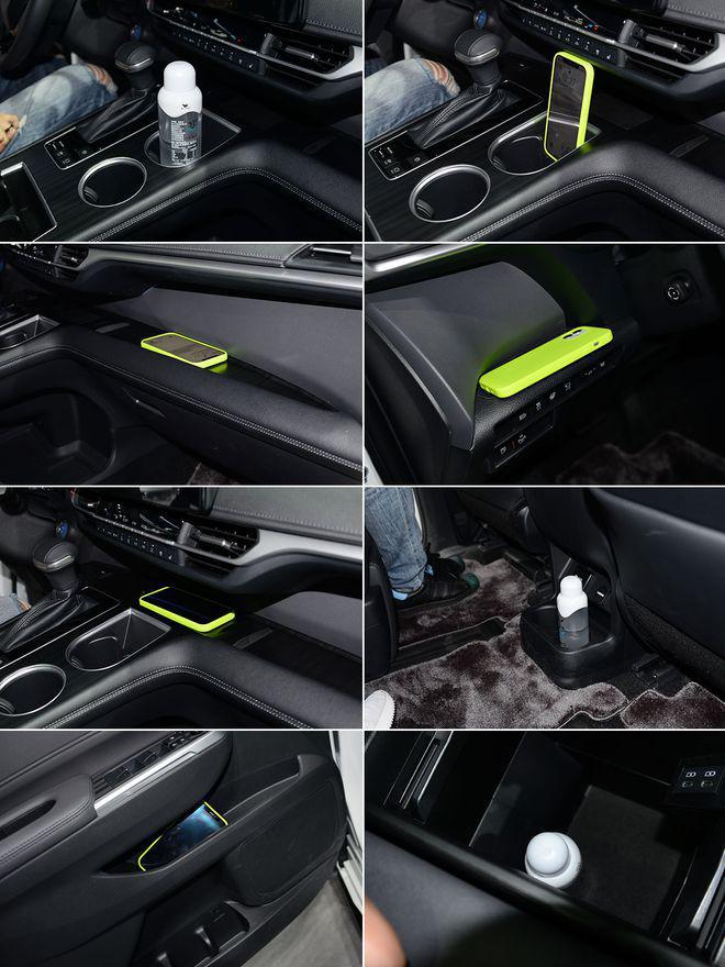 最后在来看看赛那的空间收纳,一家人出行除了乘坐空间要大舒适以外,储物空间也是考量一台MPV车型是否优秀的重要指标,这里包含了第一排、第二排以及第三排的储物表现,当然这也不是光靠数量就能取胜的,顺不顺手也是考核的一项。赛那在前排设计了很多小平台方便储物,比如门板上中下三层,中控台的左右以及中央扶手附近都有大小形状不同的空间,手机、水杯各种小零碎都能给你安排的明明白白的。