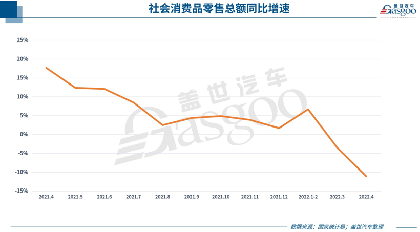 据国家统计局数据,今年3月,我国社会消费品零售总额同比下降3.5%。这是2020年8月以来首次出现负增长。而在4月,下滑势头加剧。国家统计局最新数据显示,今年4月,我国社会消费品零售总额同比下降11.1%。其中,汽车类零售额同比下滑31.6%,除汽车以外的消费品零售额同比下降8.4%。