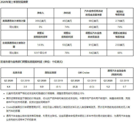 通用汽车公司(纽交所代码:GM)今日在底特律发布2020年第三季度财报。