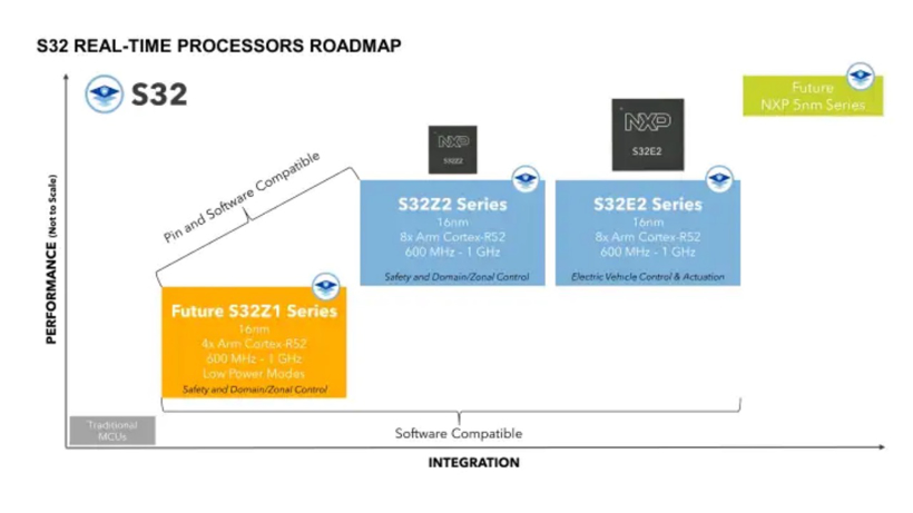 目前恩智浦S32系列产品主要有定位实时处理器的Z和E,通用MCU的K,汽车网络处理器G和雷达处理R五大系列。其中,S32G适用于汽车计算和服务型网关,有助于实现智能互联汽车和软件定义汽车;S32K负责车身域与舒适系统,可用于全面功能安全与信息安全加速软件开发;S32Z和S32E适用于汽车控制,助力安全处理和实时域控制及区域控制应用。面向即将到来的中央计算时代,恩智浦已经整装待发。