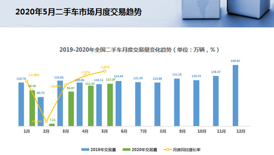 中国汽车流通协会近日举行7月线上信息发布会,对6月汽车经销商经营情况、5月二手车市场形势等数据进行了深入分析与发布:总体来看,6月汽车经销商库存预警指数为56.8%,环比上升2.6%,同比上升6.4%,库存压力明显增大;5月,恰逢五一小长假,市场客流情况明显转好,大部分市场已恢复正常水平,全国二手车市场交易量为117.29万辆,环比增长5.34%,同比增长1.01%,为今年首次月度同比正增长。交易金额为726.51亿元。