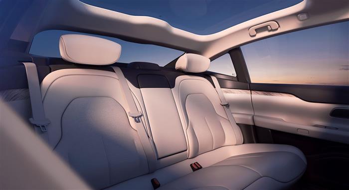 前后贯通环抱式座舱带来了更优秀的纵向及横向座舱空间,配合车辆的玻璃车顶,车内的通透感应该足以令人满意。官方数据显示,ET7玻璃穹顶达到夸张的1.9㎡,双层隔热玻璃据称可隔绝99.9%的紫外线。同时,前后排标配座椅加热、通风、按摩功能,后排标配航空头枕和环抱式扶手,令所有乘客都可获得舒适的乘坐体验。