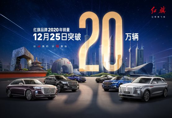 12月25日,继红旗品牌年度生产提前11天完成20万辆后,红旗销售也提前一周达成年度20万销量目标,同比增长100%。