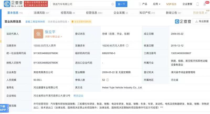 在2018年6月25日变更为领途汽车之前,其前身河北御捷车业已连续4年取得低速电动车领域行业销量第一,累计实现销量30余万辆。