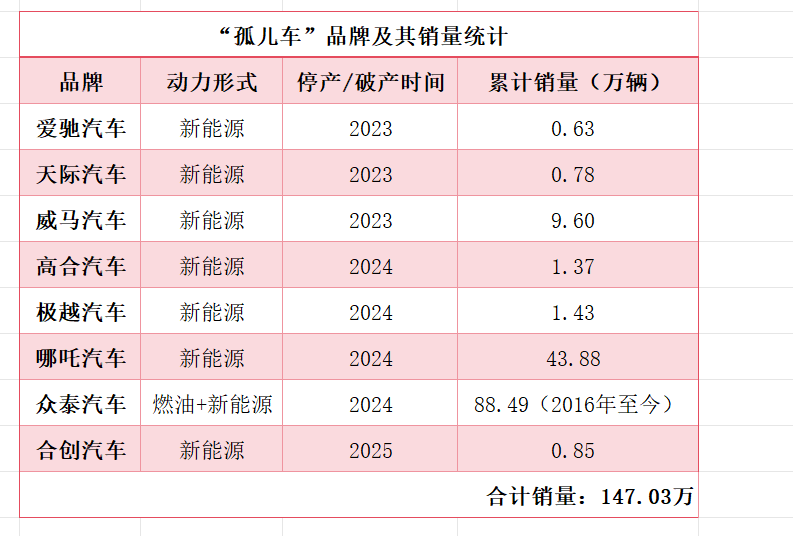 对于处于变革期的中国汽车而言,车企被淘汰自然而然,但被“卷”死之后,其遗留的保有车也将顺势成为“孤儿车”,将威马、哪吒、高合、众泰、极越等品牌计算在内,目前我国的“孤儿车”数量已远超百万,且未来还将继续增长。
